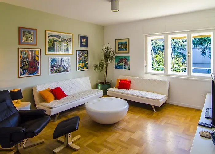 Maestro Duplex Istarska lägenhet erbjuder luftkonditionerade rum med utsikt över trädgården, i närheten av Gregorius av Nins staty. Denna lägenhet har 3 sovrum, 2 badrum och ett kök. Den erbjuder boende med gratis parkering i närheten och Wi Fi i allmänna utrymmen.
